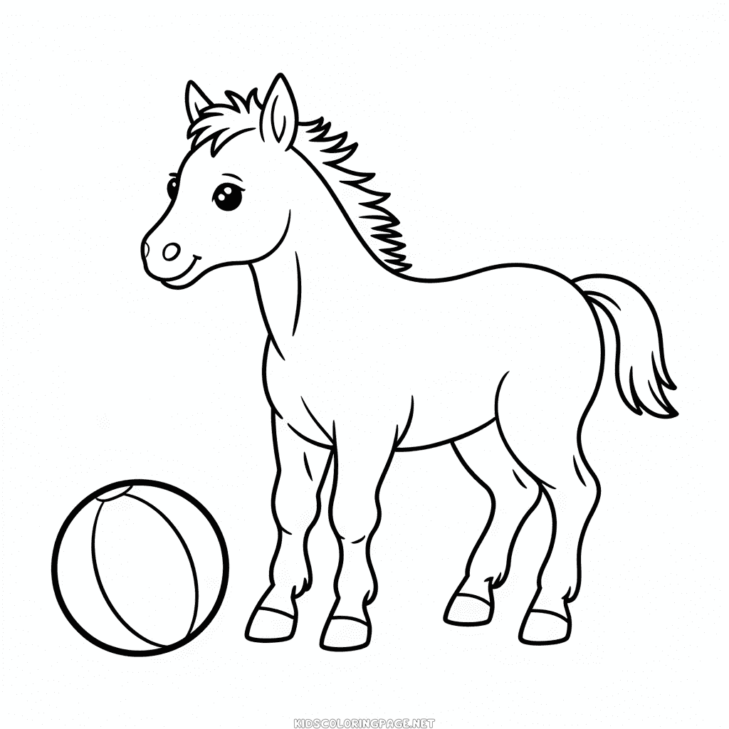 Free printable coloring sheet of Baby Foal, featuring an adorable young horse enjoying a peaceful moment in a meadow. Print and color this free Baby Foal drawing for kids. High-quality PNG image, black and white, optimized for A4 PDF printing.
